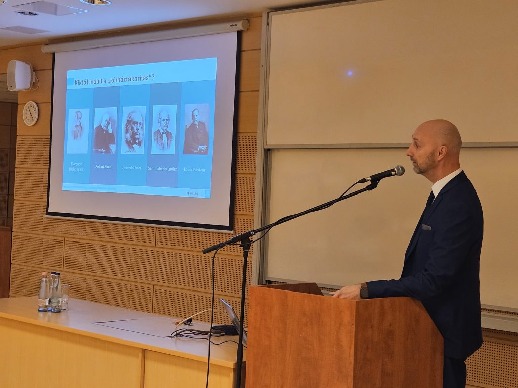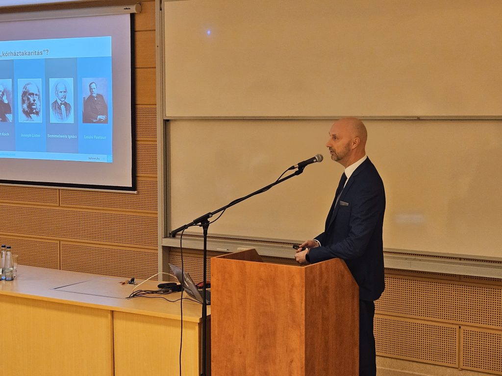 Kerényi Zsolt, a B+N Magyarország Kft. higiéniai szakmai vezetője a kórházi infekciókontrollt támogató takarítás fejlődéséről tartott előadást, rávilágítva a modern higiéniai megoldások szerepére. Ezt követően Csernus Sándor, a Metrimed műszaki vezetője és Blaskovics Gábor ügyvezető, minőségirányítási vezető a csípő- és térdprotézisek sterilizálásának fontosságát ismertették.